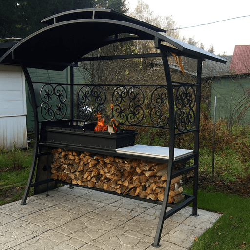 - Тип конструкции: навес над мангальной зоной может быть открытым, частично закрытым или полностью обустроенным.