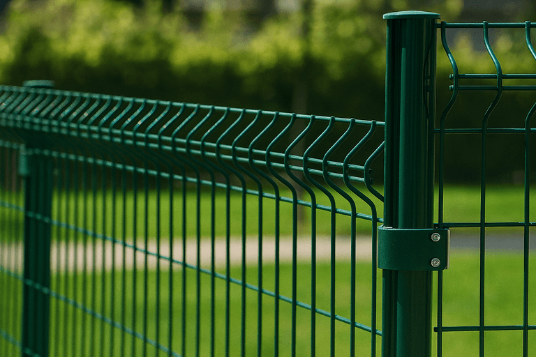 3д заборы представляют собой секционные ограждения из сварной металлической сетки, армированной V-образными ребрами жесткости. Они широко применяются на частных и промышленных объектах благодаря прочности, прозрачности и простоте монтажа.